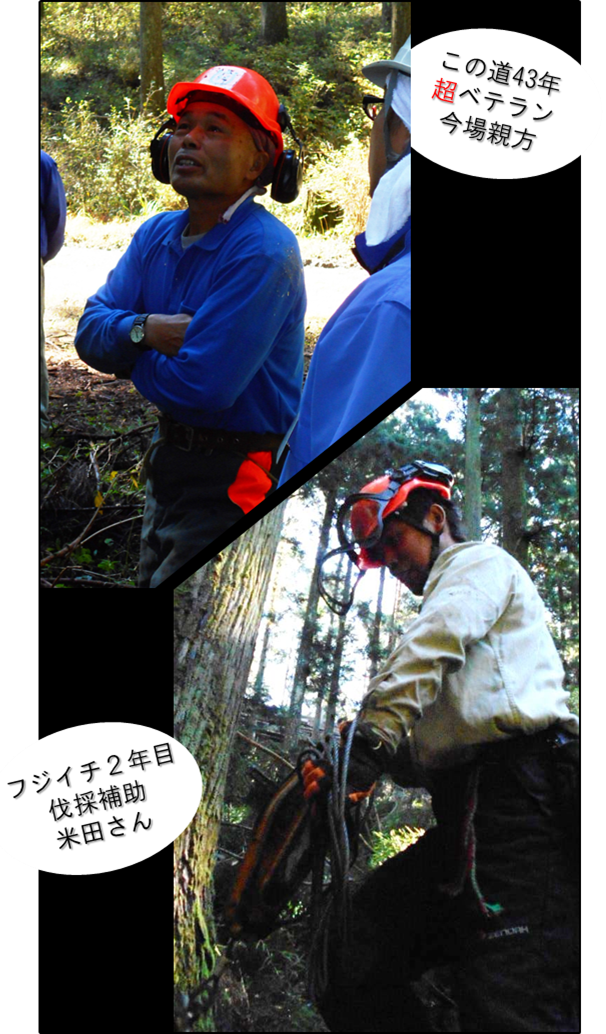 今回の伐採班は、この道43年のベテラン親方率いる、今場班。